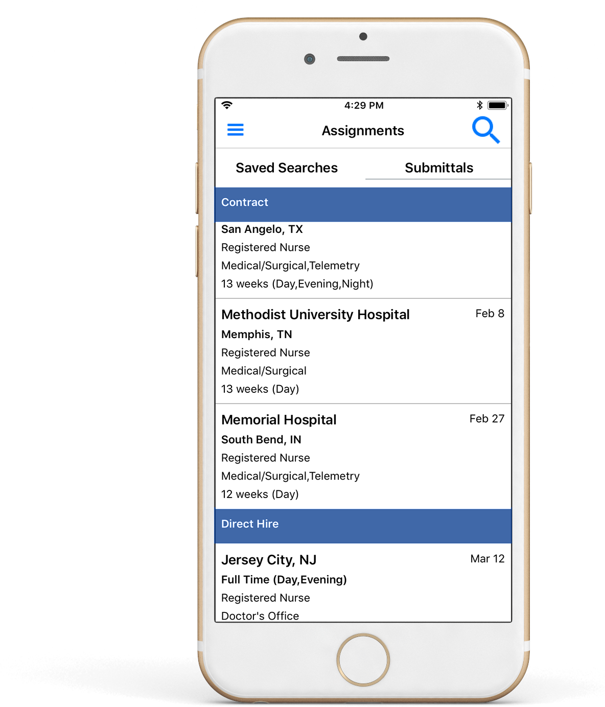 We find staffing positions and placements for medical professionals in hospitals and healthcare facilities in the United States.
